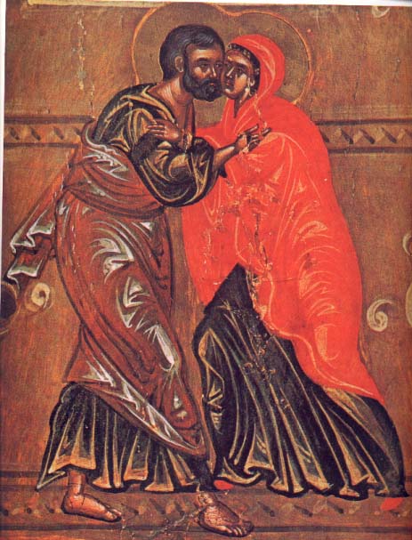 St. Joachim and St. Anna, the grandparents of Godman Jesus. They were very pious and they loved each other very much, but they could not have children. After many years of prayer, God gave them their one and only daughter, Mary. (16th century, Ecclesiastical Museum of Sofia).