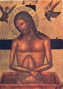 ...το Νυμφίο της Εκκλησίας, που υπομένει θεληματικά την εσχάτη ταπείνωση για την αγάπη των ανθρώπων. Δεν είναι νεκρός, δεν τον έχει αγγίξει φθορά: είναι ο Παντοδύναμος Θεός, ο Βασιλεύς της Δόξης, και απλώς κοιμάται. (Ελληνική εικόνα, 16ος αι.)